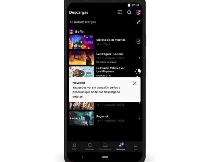 Una vez descargadas las películas, podrás encontrarlas dentro de la sección «Descargas» en la aplicación de Netflix.