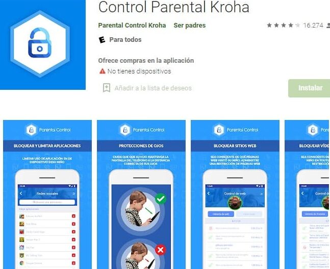 4. Kaspersky Safe Kids: esta aplicación ofrece varias funciones de control parental, incluido el bloqueo de sitios web inapropiados, la supervisión de actividades en línea y el establecimiento de límites de tiempo para el uso de dispositivos. También cuenta con una función de geolocalización para saber dónde están tus hijos en todo momento. [Descargar Kaspersky Safe Kids](https://play.google.com/store/apps/details?id=com.kaspersky.safekids&hl=es)